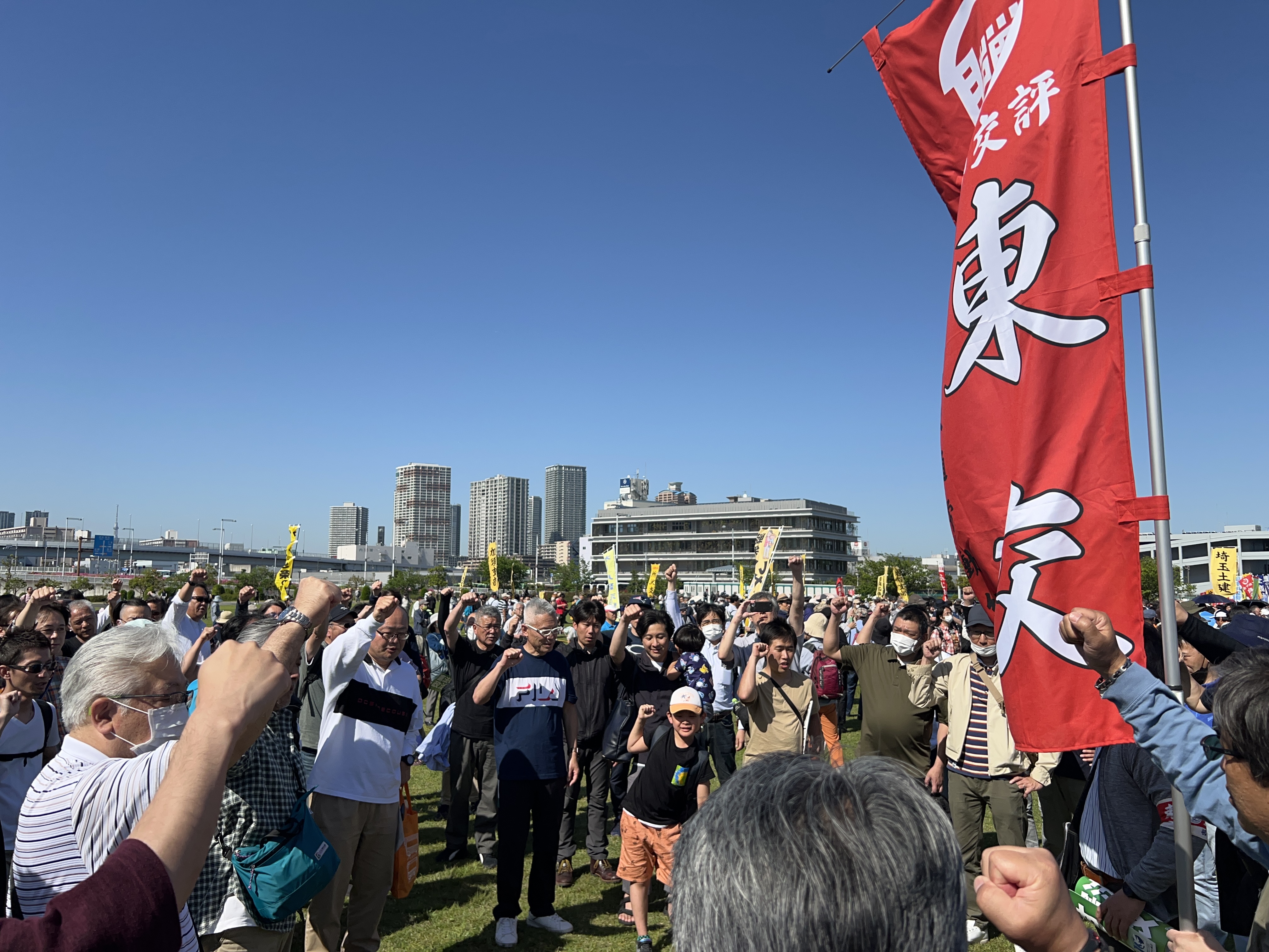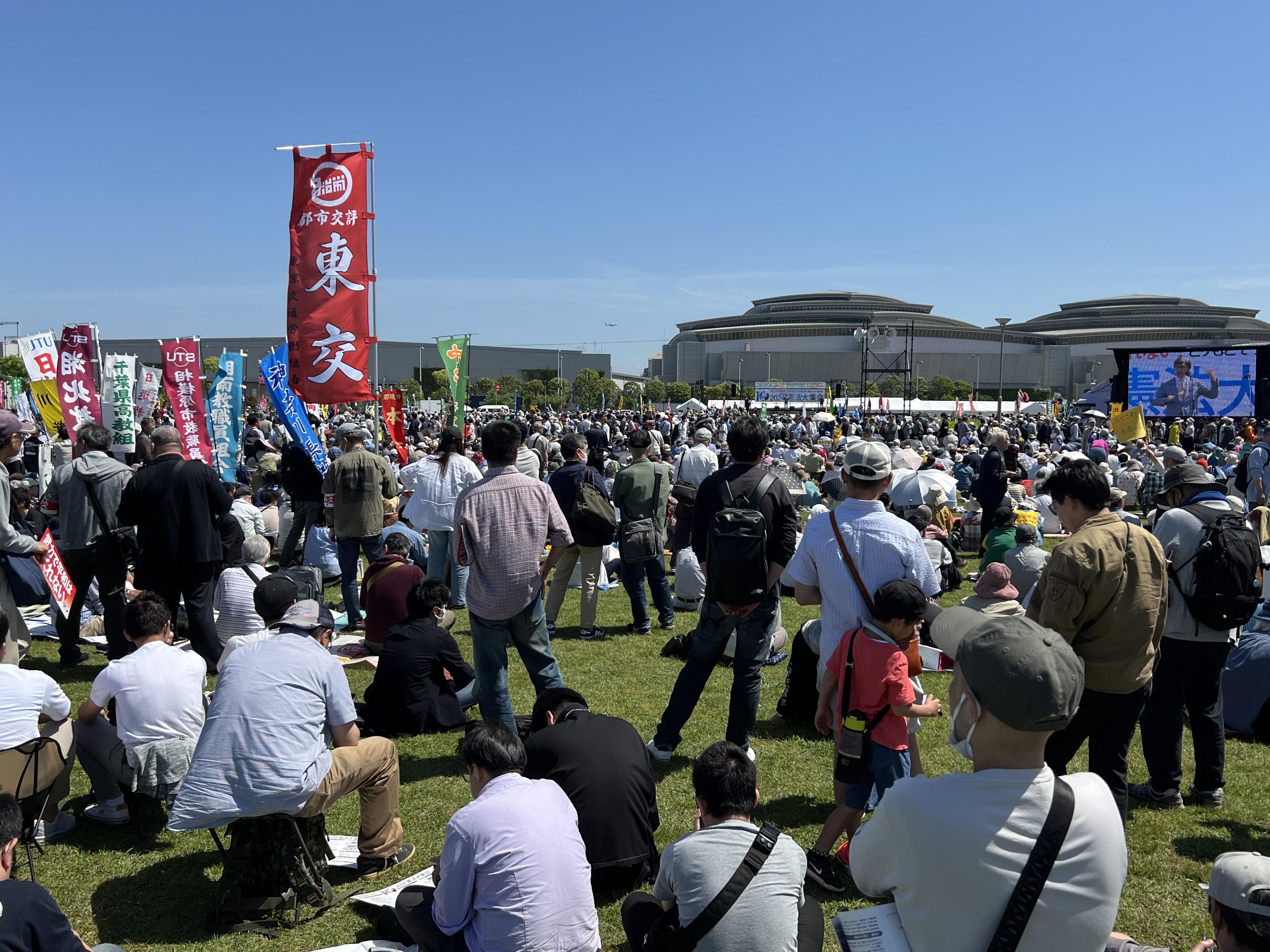 5月3日、有明防災公園で「武力で平和はつくれない!とりもどそう憲法いかす政治を 2024憲法大集会」が開催され、東交より100名が参加した。