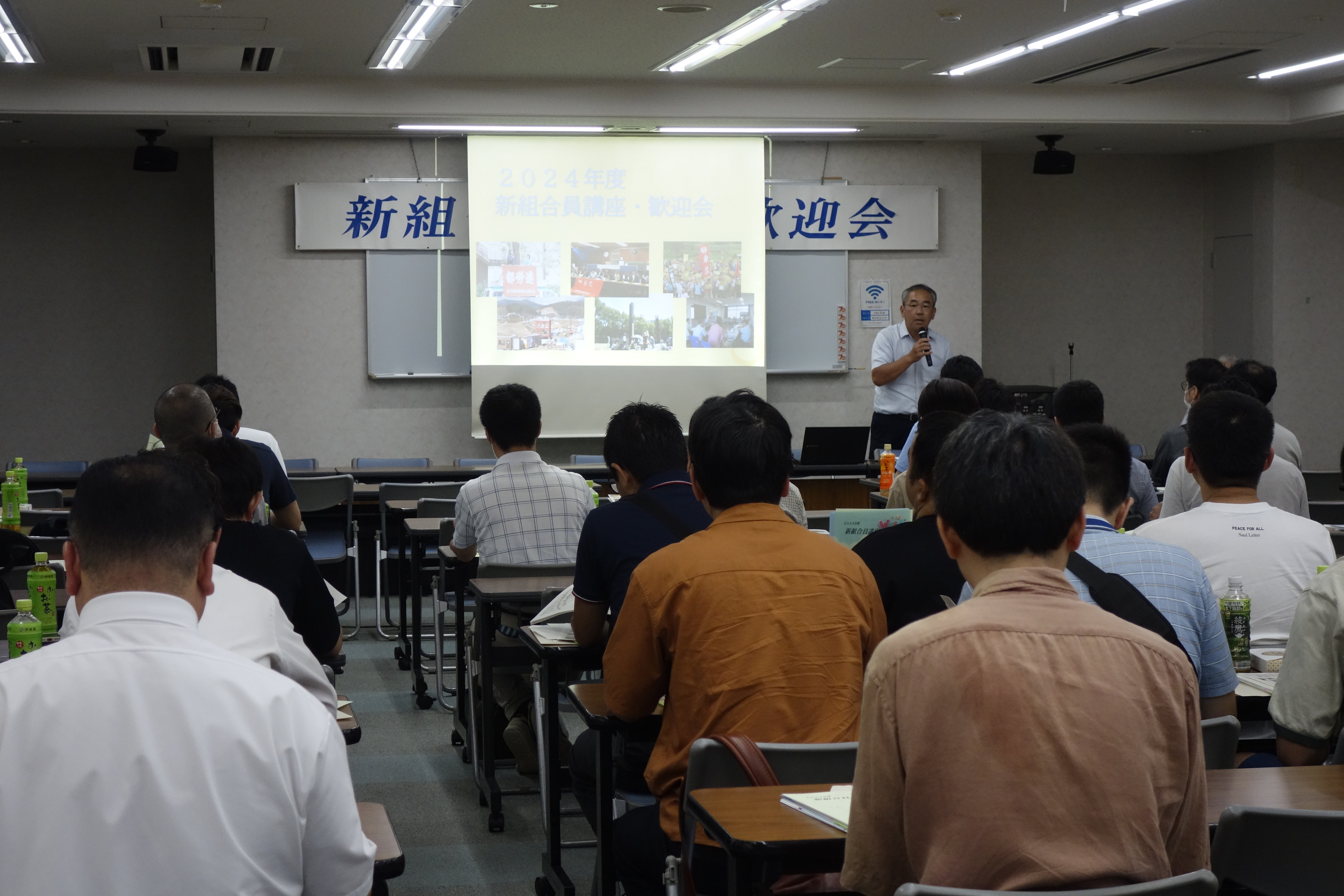 8月26日、東交本部大会議室で、「新組合員講座・歓迎会」を2回に分けて開催した。9月6日と合わせて、新組合員約155名が参加する。