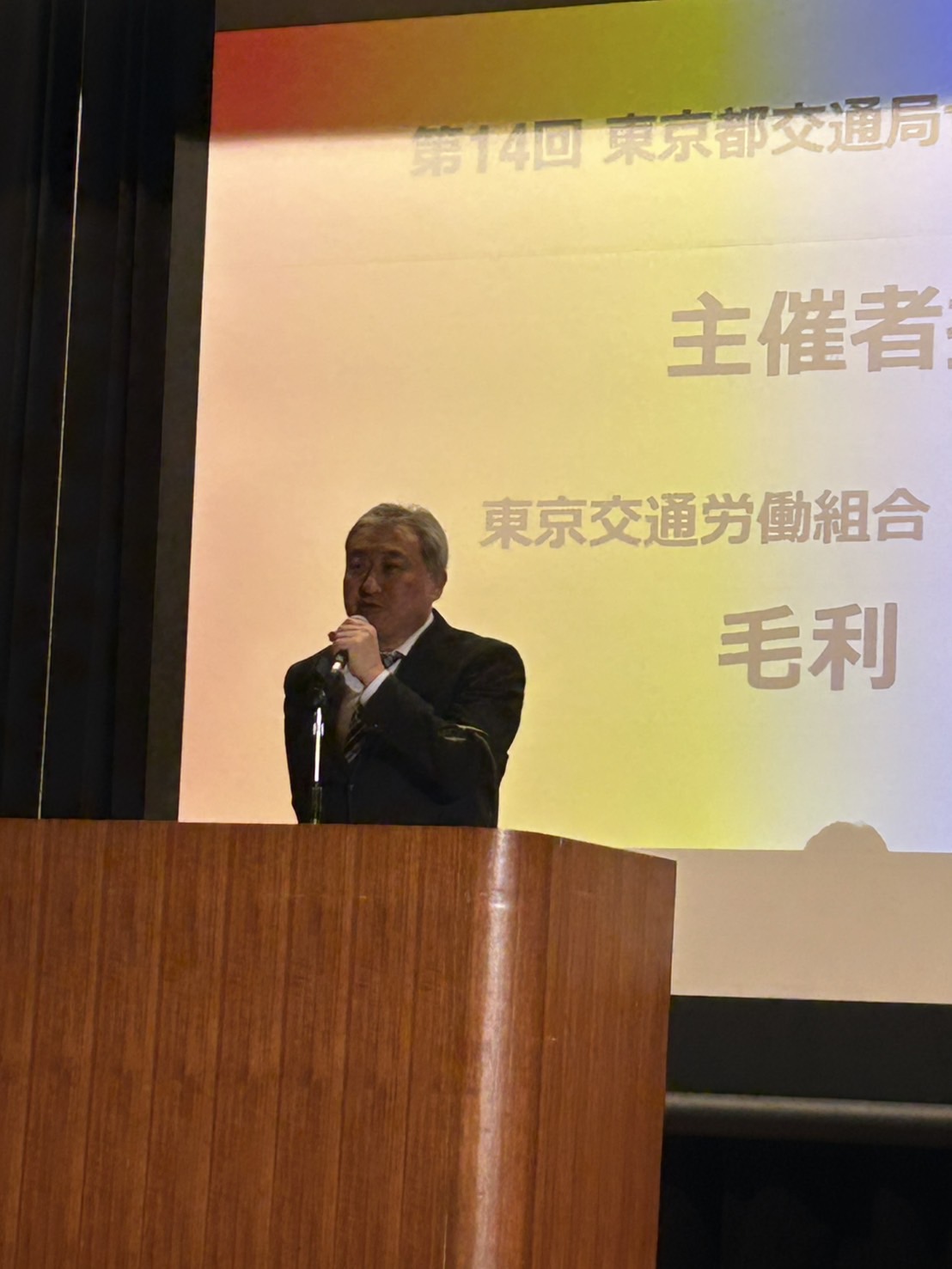 2月6日、東京都交通局サービス推進発表会が行われ、午前の部は毛利副執行委員長、久我局長が挨拶を行った。