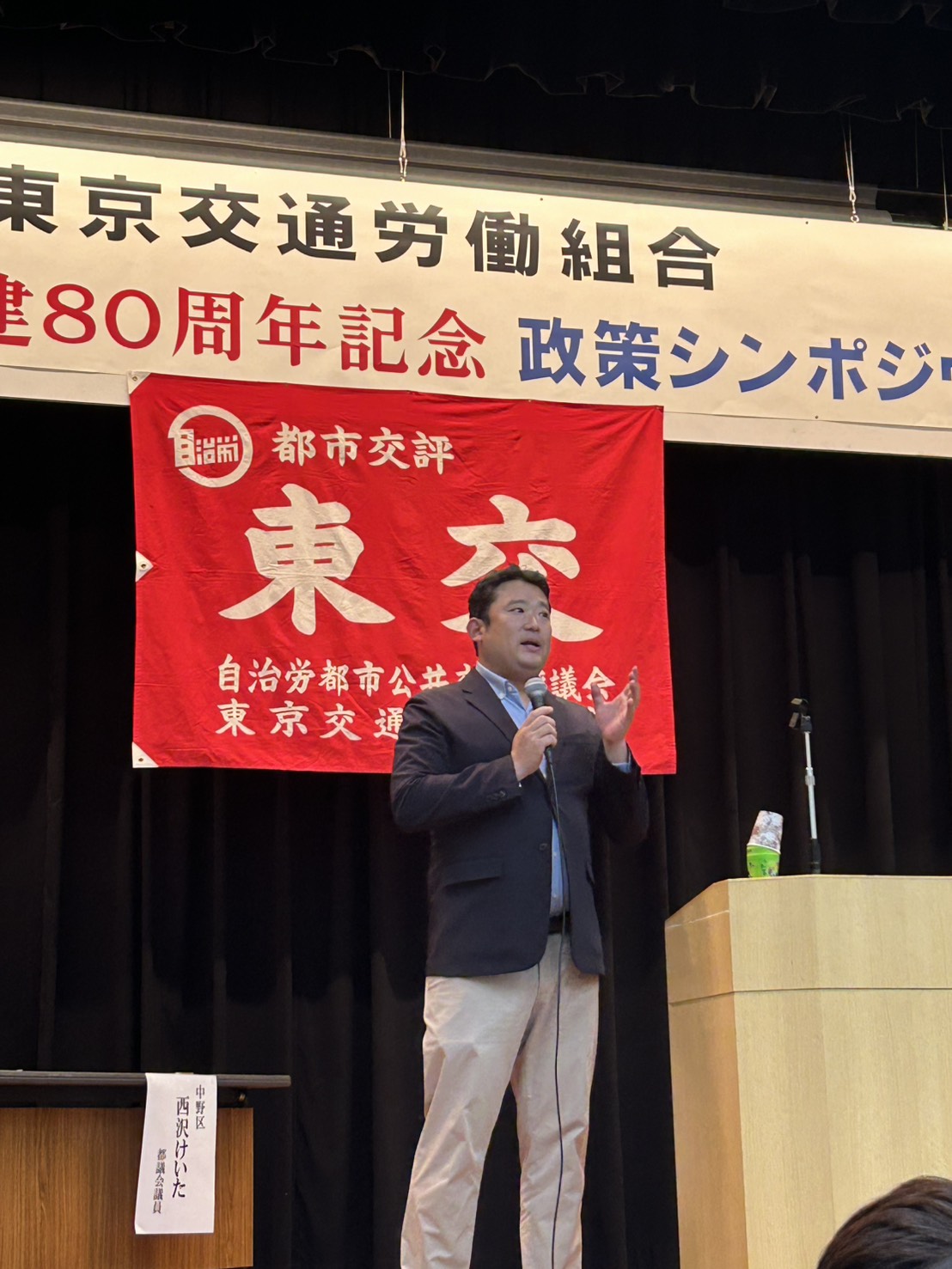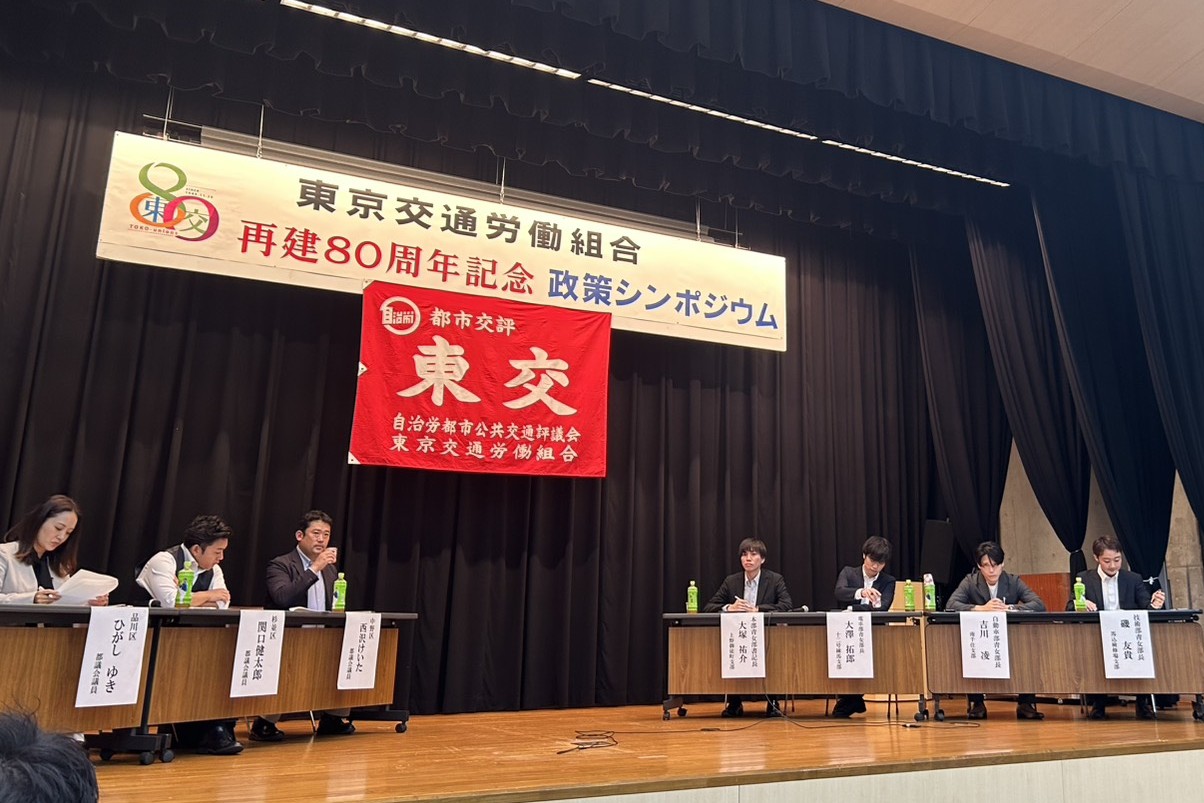10月18日、東交は、田町交通ビル6階ホールで「東交再建80周年記念『政策シンポジウム』」を開催し、各支部及び青年女性部より253名をはじめ、本部員・都議会議員ら約280名が参加した。