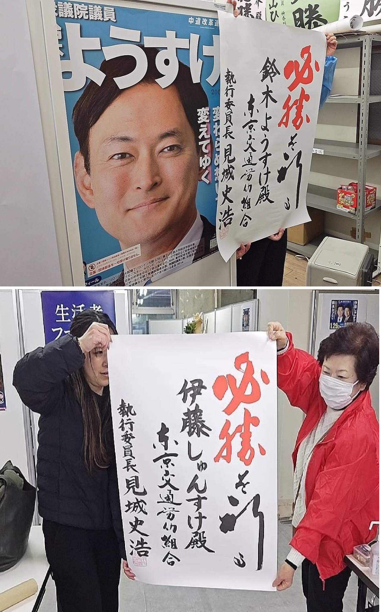 写真2枚目は、上から東京都第10区(文京区・豊島区)の「鈴木ようすけ」選対事務所、東京都第23区(町田市)の「伊藤しゅんすけ」選対事務所にて。