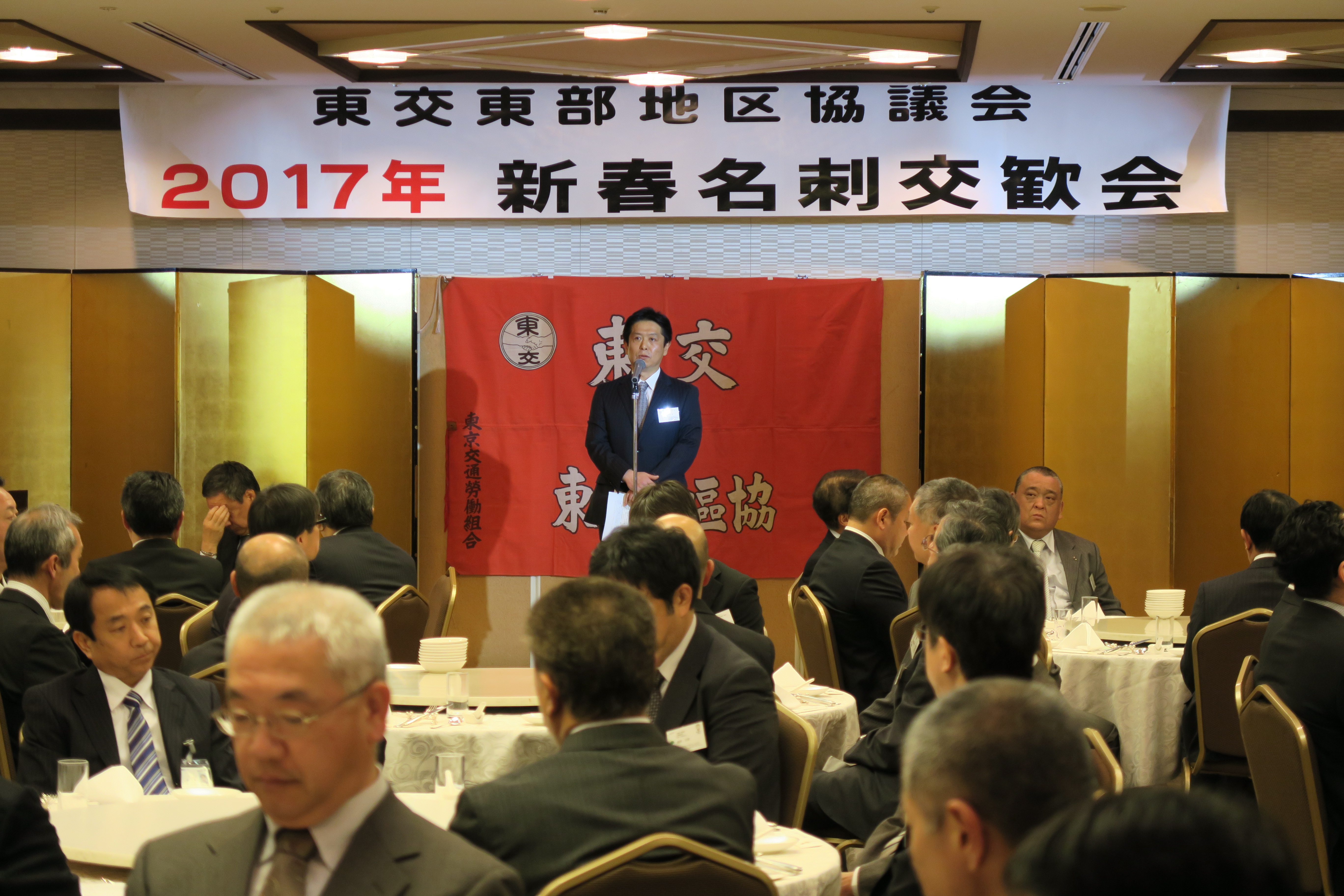 1月6日、地区各支部三役、交通局各事業所職制、来賓等93人が参加して、東武ホテルレバント東京で開催された。