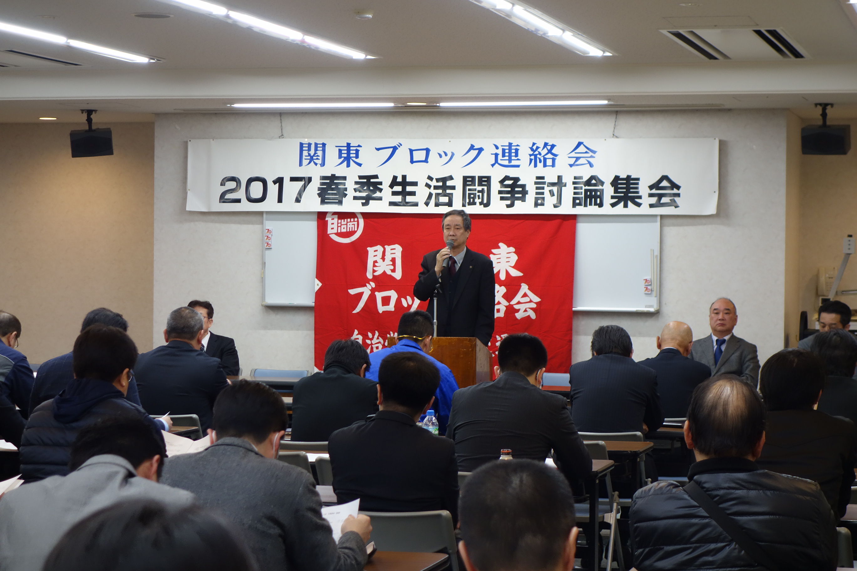 自治労総合都市交通局・関東ブロック連絡会は2月23日午後6時30分から、東交本部大会議室で「2017春季生活闘争討論集会」を開催し、横交・川交・東交の3単組の組合員約90人が参加して、関東甲地連への移行に向けた課題について学習し、認識を深めた。