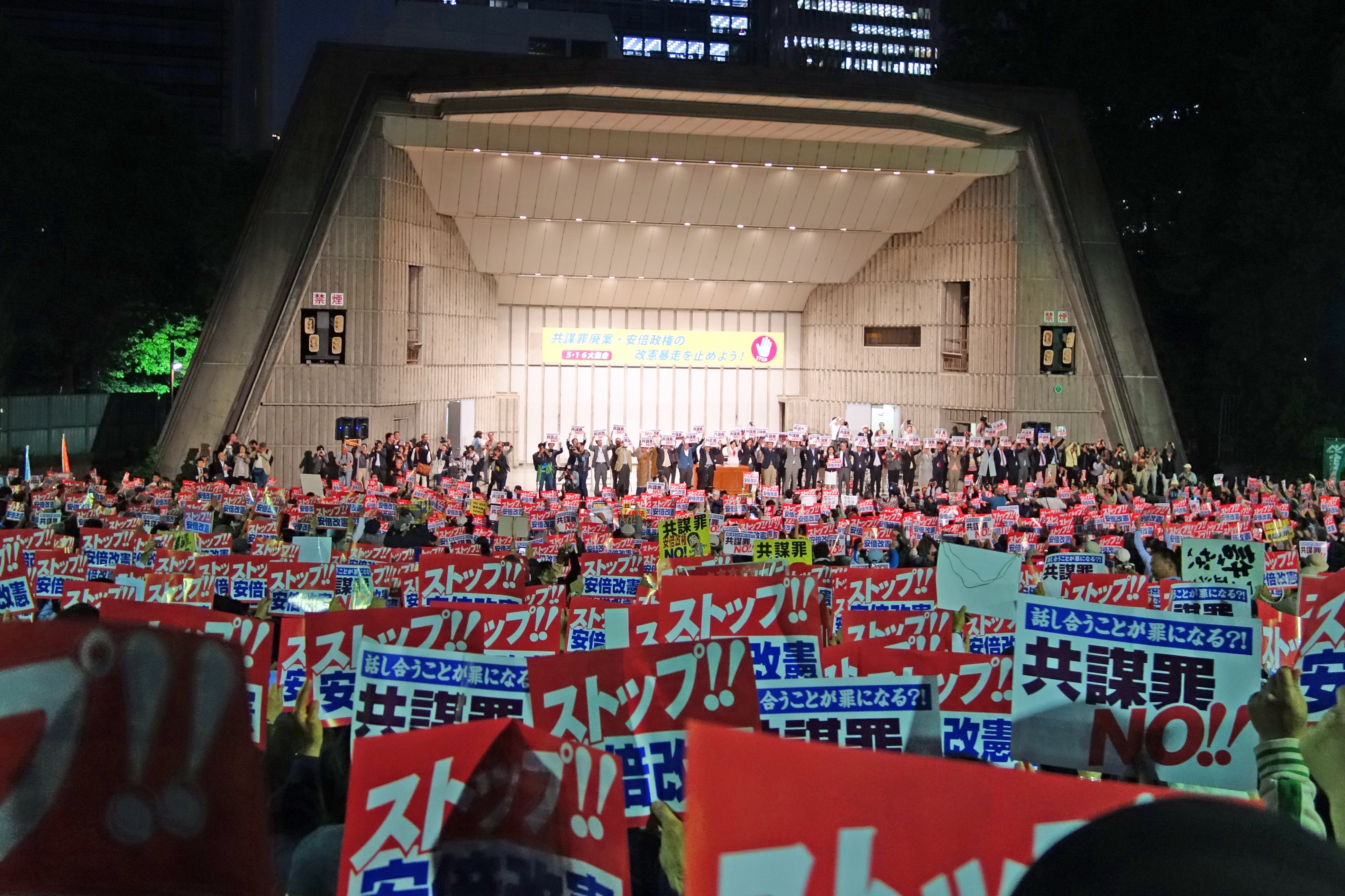 各政党の国会議員も約40人が駆けつけ、民進党の枝野幸男衆院議員、共産党の山下芳生副委員長、自由党の山本太郎共同代表、社民党の吉川元政策審議会長、「沖縄の風」の糸数慶子代表が立ち、それぞれ共謀罪の危険性に触れ廃案に向け全力を出し抜く決意を述べた。