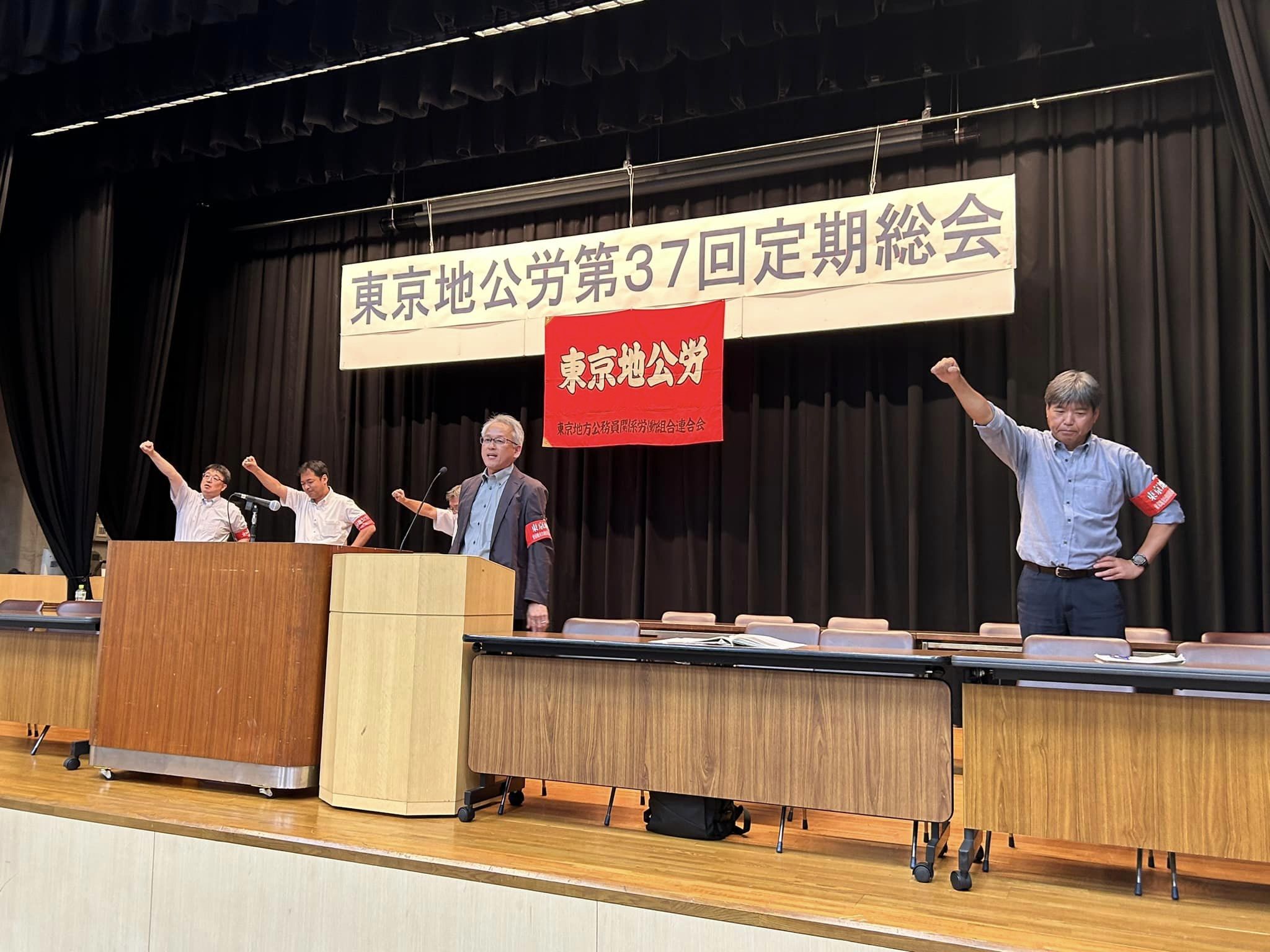7月24日、田町交通ビル6階ホールで「東京地公労第37回定期総会」が開催され、東交より代議員15名が参加した。