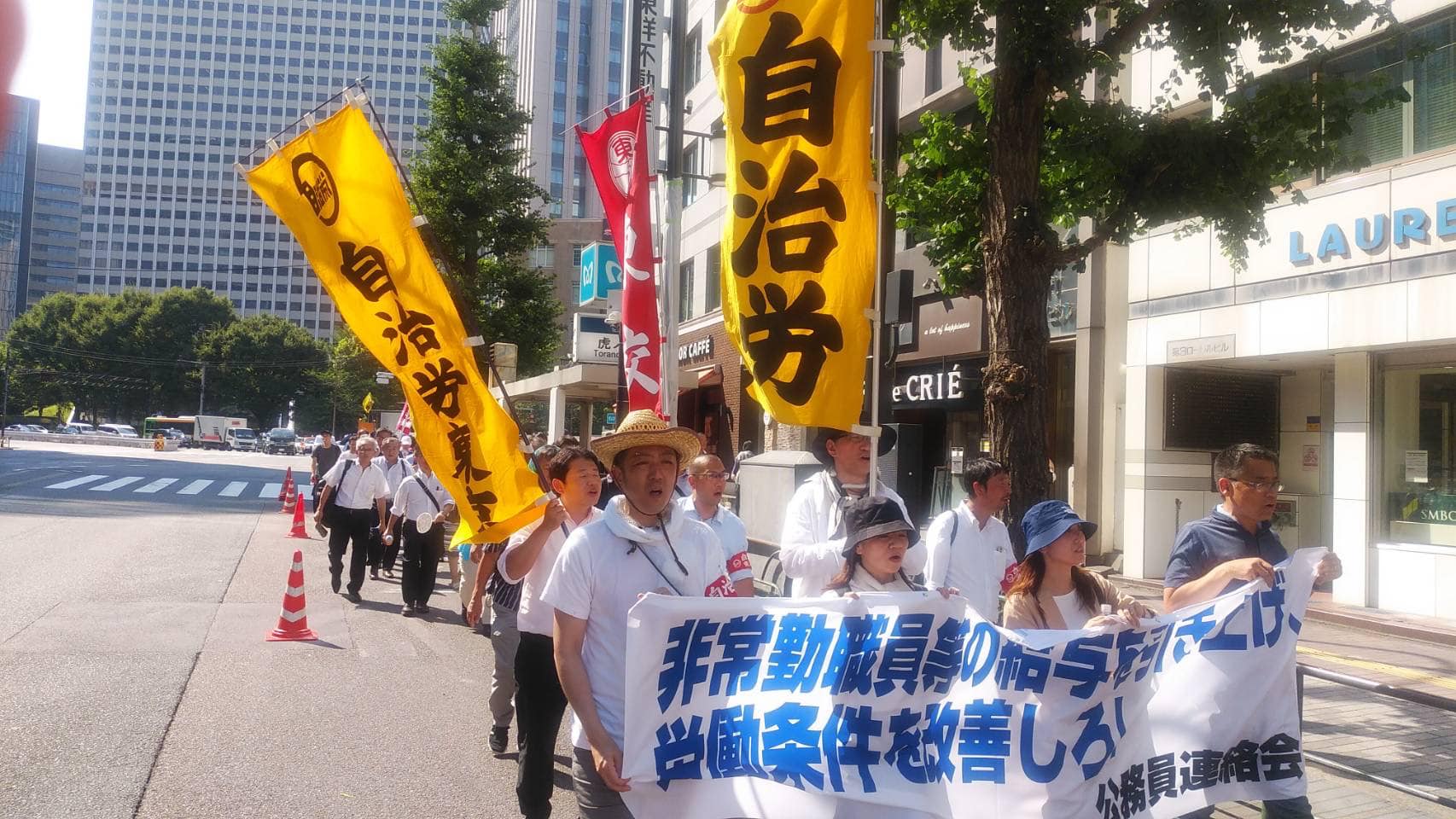 7月26日、公務員連絡会は人勧期要求の実現に向けた取り組みとして「2023人勧期7.26中央行動」を日比谷野外音楽堂で開催し、東交より11名が参加し、霞ヶ関周辺をデモ行進した。