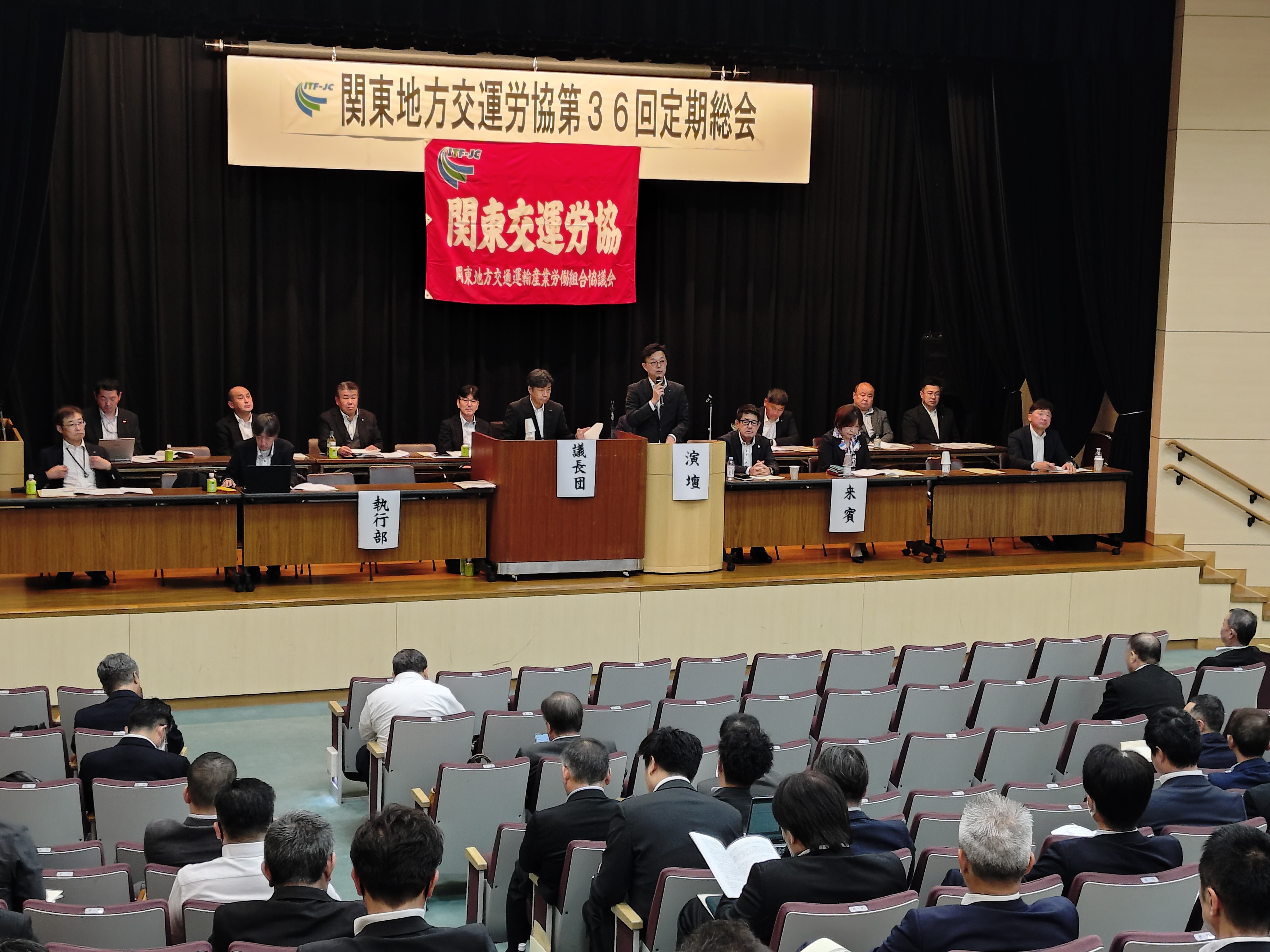 10月24日、田町交通ビル6階ホールで「関東交運労協第36回定期総会」が開催され、自治労都市交評から、役員が3名、代議員が7名、うち東交からは役員2名、代議員3名が参加した。